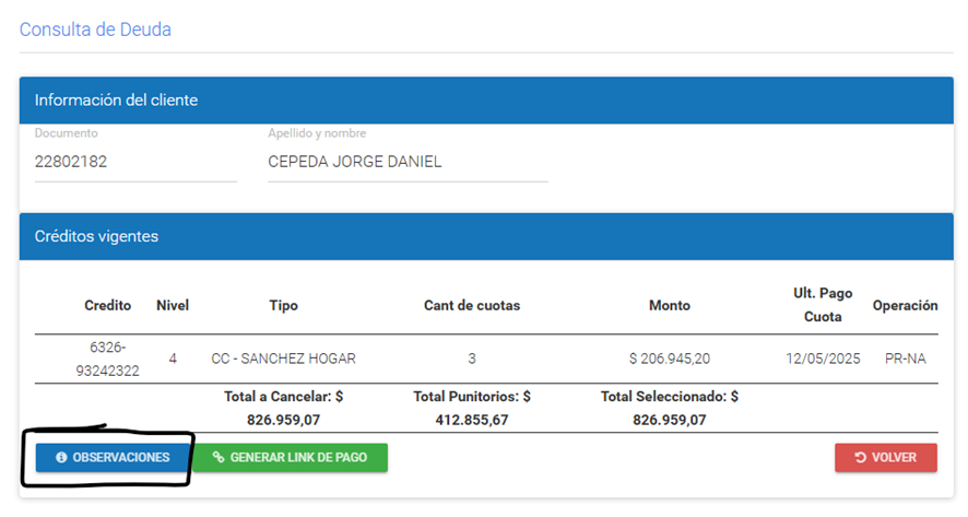 Una vez finalizada la gestión con el cliente se debe dejar registro de la gestión en Moracero y en OBSERVACIONES de Crédito Argentino.