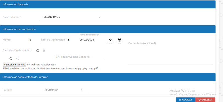 . Comentario (opcional) : Es una observación opcional para que se especifique la gestión que realiza el cliente sobre el pago que estamos cargando en sistema.