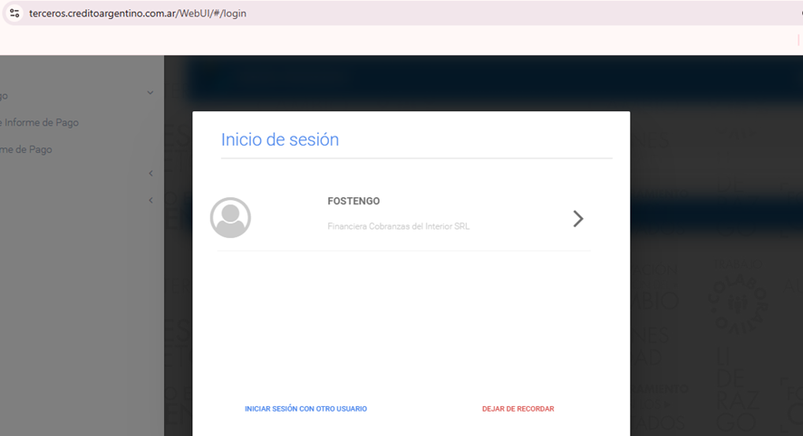1. Ingresar a sistema de Crédito Argentino “ https://terceros.creditoargentino.com.ar/ “