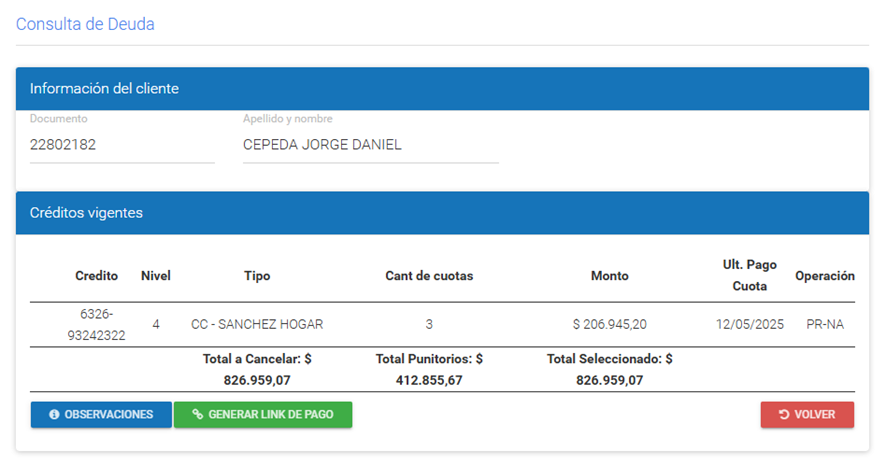 3.Verificar Nº de Crédito y cuotas adeudadas del cliente.