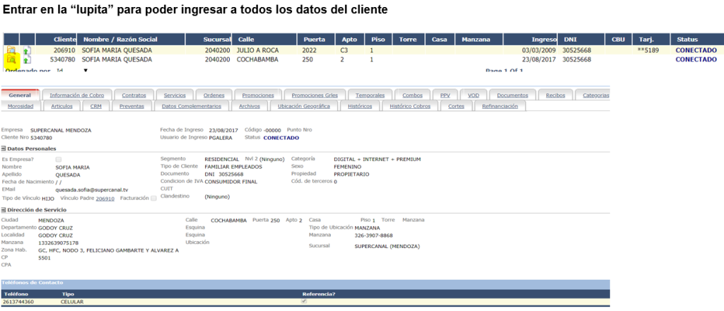 Clientes que informan que no tienen el servicio, que esta en otro domicilio que no
