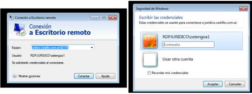 Seguirá procesando. Y se conectara al ACCESO REMOTO de Castillo. En donde deben escribir el USUARIO asignado.