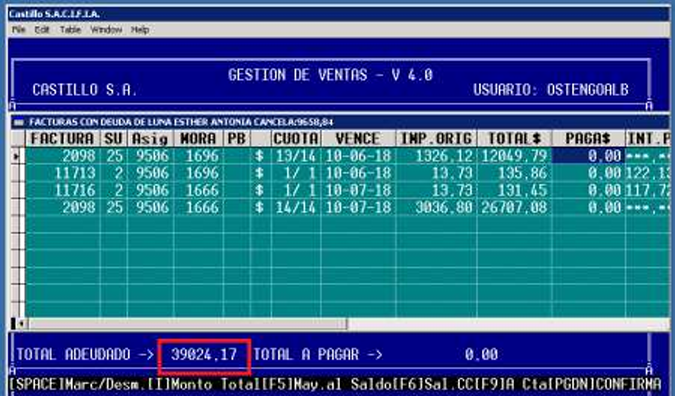 FACTURA 0 – podemos verificar el importe total a cobrar. Presionamos ENTER hasta llegar a una pantalla que nos indicara el capital actualizado.