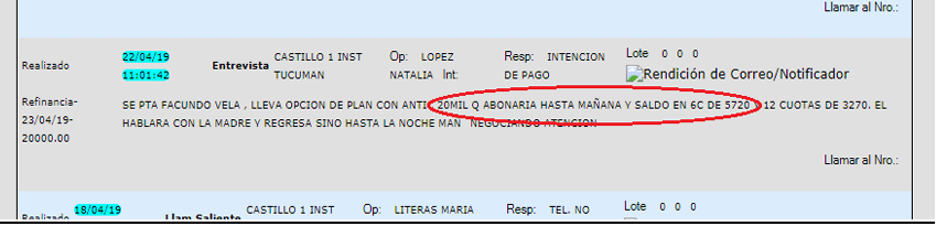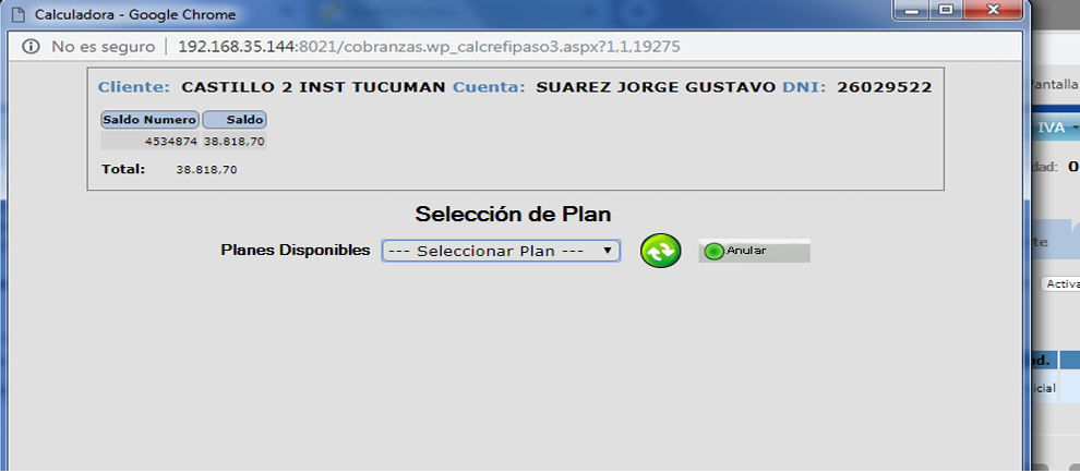Si ya tiene un plan de pagos cargados NO se debe cargar otro plan (consultar con