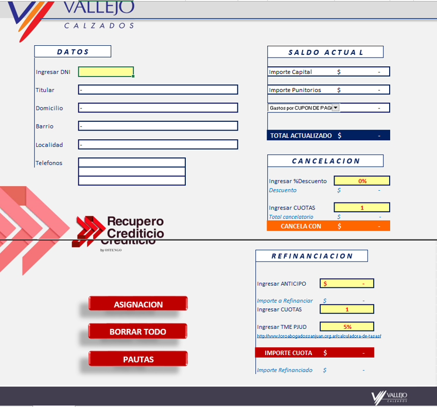 “Mi nombre es… me comunico desde Ostengo Abogados en representación de VALLEJO CALZADOS, verificamos que el total es de $xx,xx. ¿Cancela hoy?