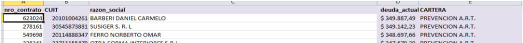 Tipo de cartera: Empresas con ART vigente o suspendida por mora.