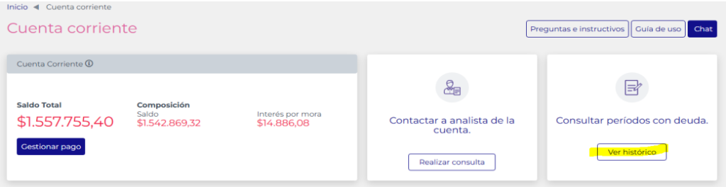 Presiono en VER HISTORICO