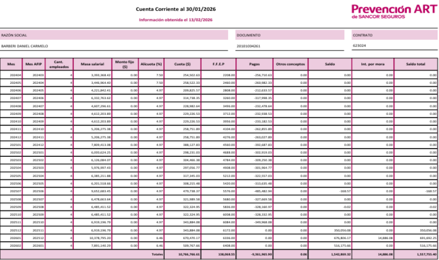 “Comprendo. Le informo que los reintegros y la cobranza de la ART son