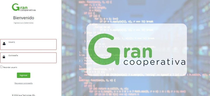 Acceso al sistema: https://gestion.grancoop.com.ar/webpages/login.aspx